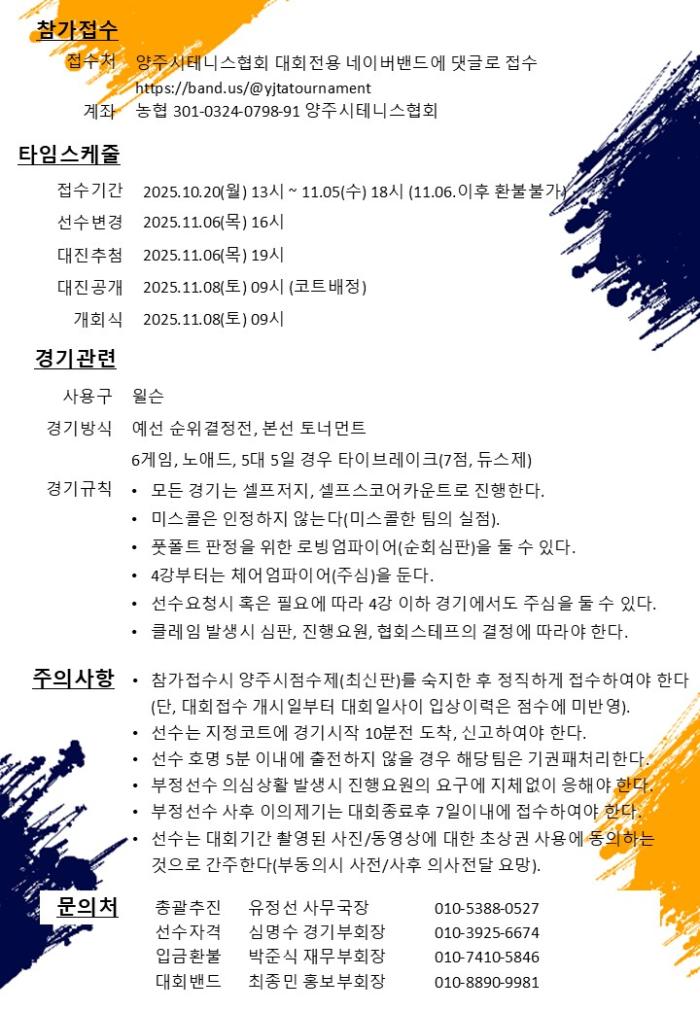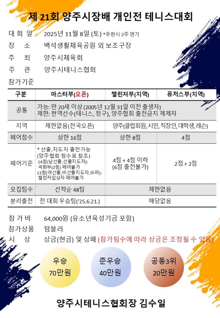 2025 양주시 테니스협회장배 전국 여성 개나리부 테니스 대회가 지난 일요일(10월 19일) 있었다.