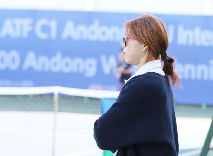 | 최주연 아카데미의 부탁으로 안동 주니어대회에서 두 선수의 투어 코치를 담당하고 있는 김경민 코치가 선수들의 훈련을 바라보고 있다. |
