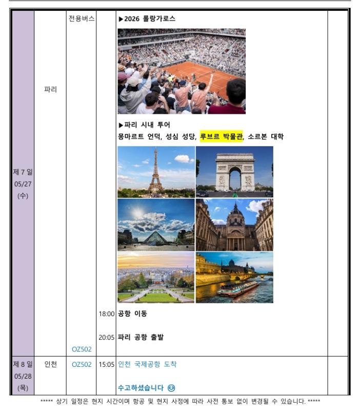 • 7박 8일 꿈의 투어 롤랑가로스