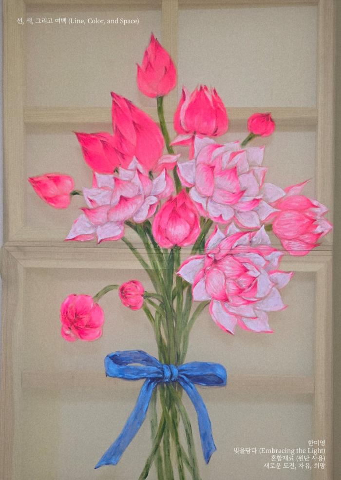 한미영 작가의 〈빛을 담다〉는 동양화와 서양화의 경계를 허무는 퓨전 예술의 새로운 도전을 담은 작품입니다. 작가는 이 작품을 통해 자유와 희망의 메시지를 전달합니다.