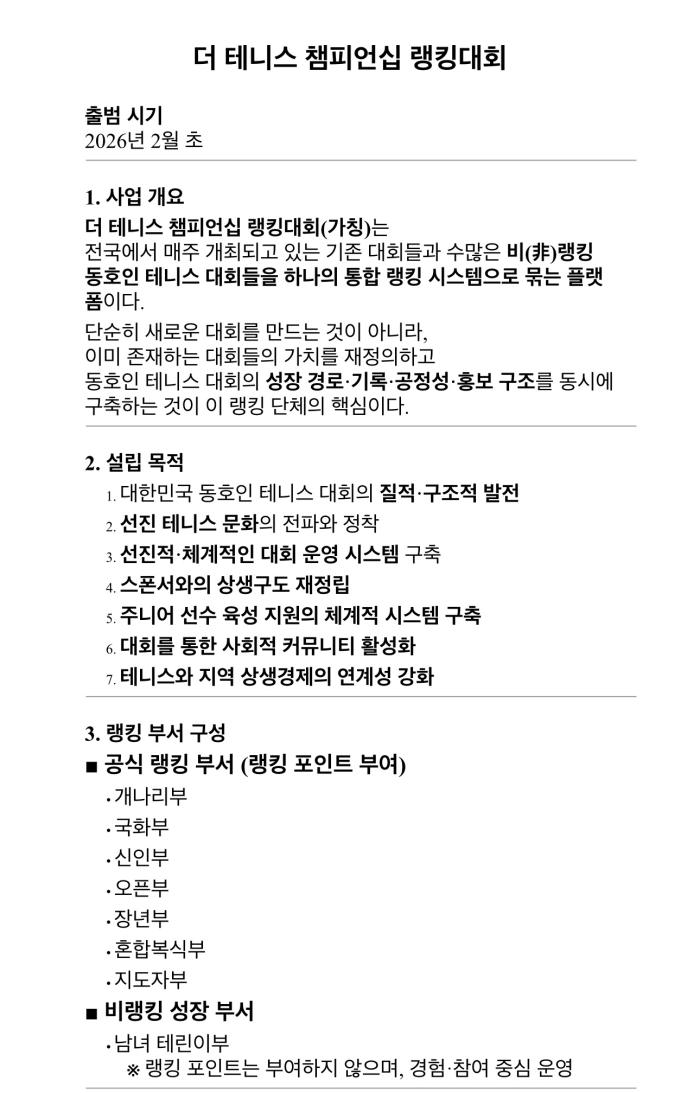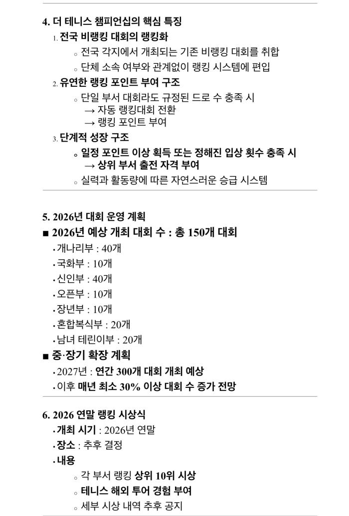 새로운 랭킹 단체, ‘더 테니스 챔피언십(가칭)’을 출범합니다.