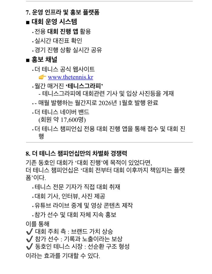 대한테니스협회와 기타 사 단체의 역할이 어느 정도 구분될 필요가 있다고 생각합니다.