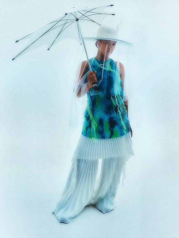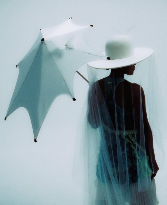 바지 차림에 베일을 쓰고 우산을 든 모습의 나오미… 이 입장 장면은 곧바로 소셜 미디어와 언론을 통해 확산됐다.