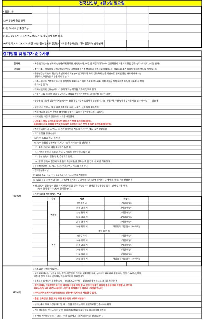 KOSTA 대회 안내