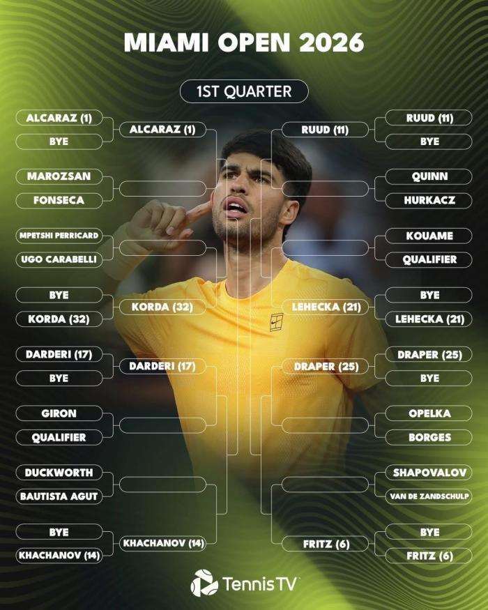 이번 마이애미의 우승 후보는 3파전으로 예상된다. 알카라스와 시너는 물론이고 다닐 메드베데프 역시 매우 우승 가능성이 높은 선수다. 알카라스는 2022년 마이애미 우승 경험이 있고, 시너 역시 24년에 우승 타이틀을 확보했었다. 메뎊 역시 2023년에 타이틀을 차지한 마이애미 타이틀 리스트다. 특히 메뎊은 올해 두 개의 타이틀을 확보했고, 인디언웰스에서도 결승에 올라 시너에게 패했지만 이전에 보이지 못했던 공격력을 보여주며 아깝게 패했다.