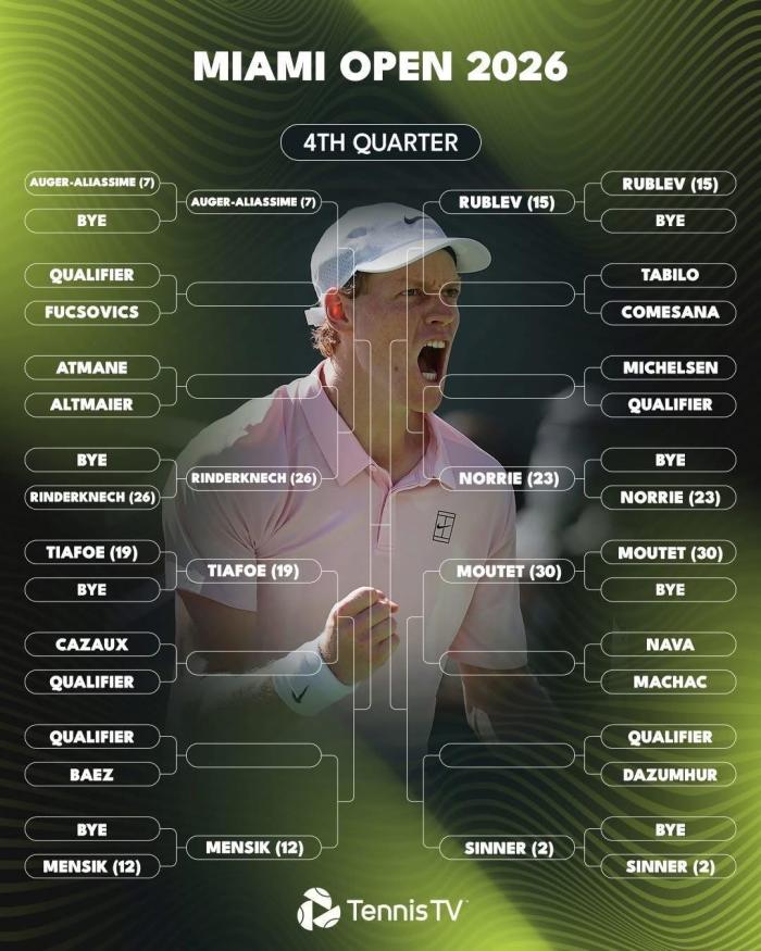 지난해 챔피언은 야쿱 멘식이었다. 그러나 그는 올 초 오클랜드에서 ATP250대회에서 타이틀 확보 후 그렇다할 성적을 보여주지 못하고 있다. 인디언웰스 우승한 시너가 마이애미까지 접수하며 선샤인 더블을 차지할 수 있을지, 아니면 알카라스를 비롯 메뎊이 자신들의 존재감을 또 보여줄지 기대가 크다.