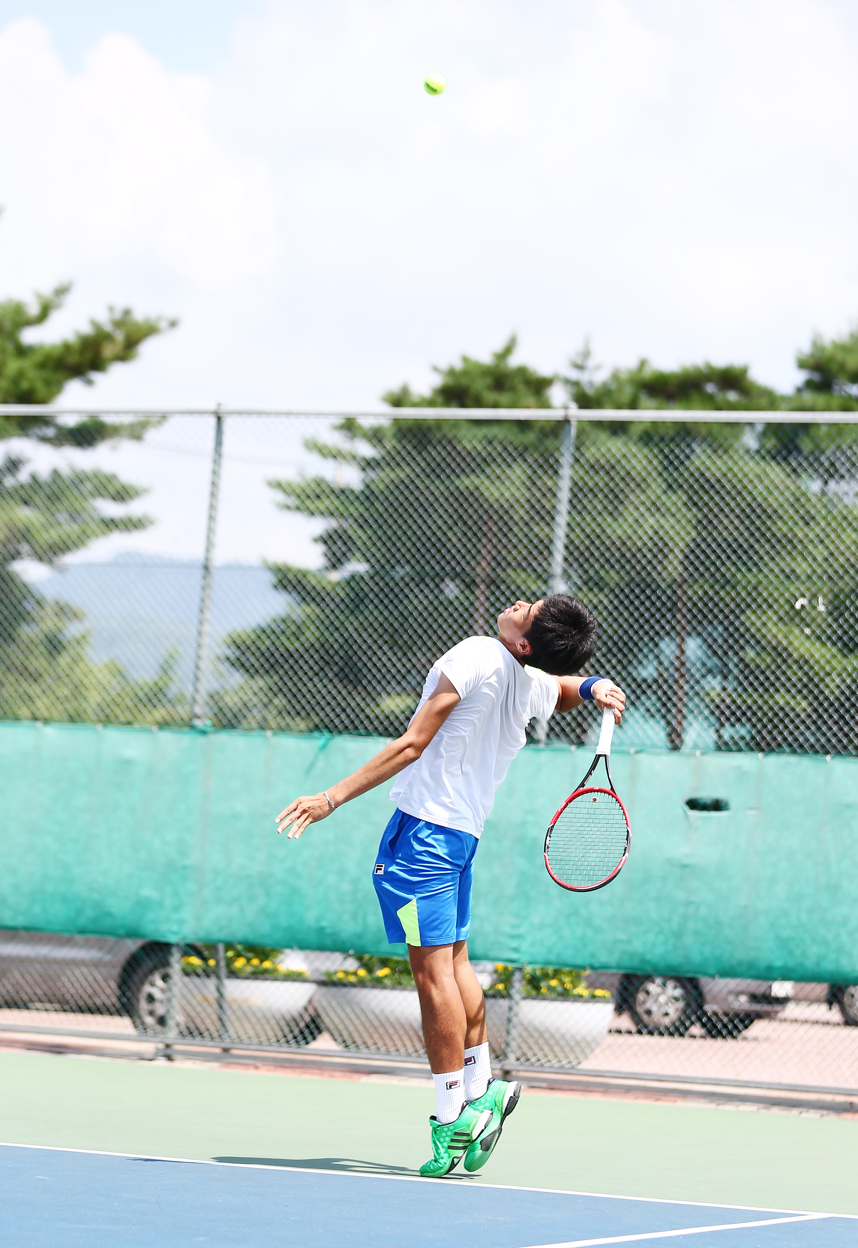 현재 게임 스코어는 4대4, H고의 H선수가 서비스를 넣었다. 볼은 강력하게 상대편 코트로 날아들어 갔으나 살짝 서비스라인을 벗어났다. M고의 M선수는 일단 서비스 된 볼을 리턴 하면서 손가락을 들어 폴트라는 신호를 했다. 그런데, 워낙 H선수의 볼이 강력했기에 M선수의 스트링이 끊어져 버렸다.