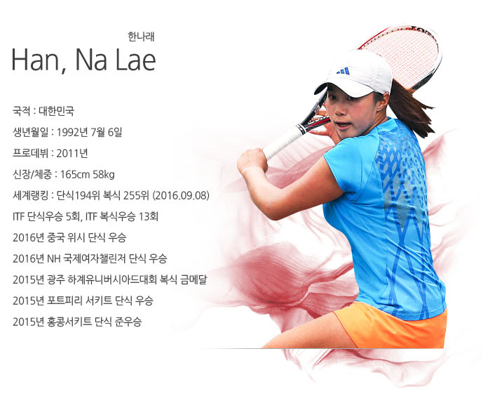 그 첫 번째는 국내 여자랭킹 1위 한나래(인천시청,24세,179위)다. 2014년 코리아오픈에서 장수정을 1라운드에서 누르고 2라운드에 진출했던 한나래는 양손 포핸드를 치는 선수다. 올해 1라운드 상대는 서브와 포핸드가 강점인 카밀라 조르지(이탈리아,24세)다.