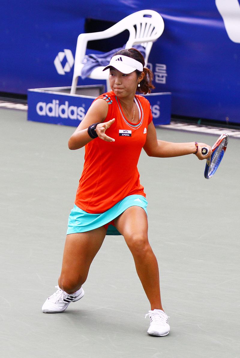 | 2012년 코리아오픈 최초로 단식 2라운드에 오른 이소라가 경기를 뛰고 있다. |
