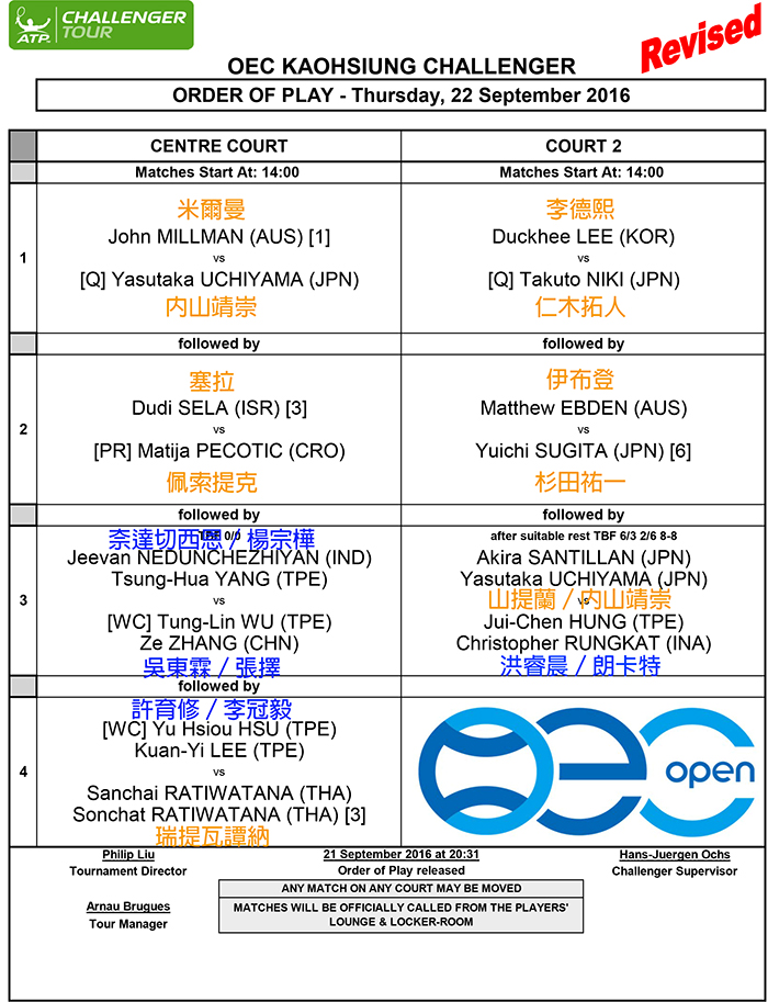 카오슝 챌린저 오늘 일정표