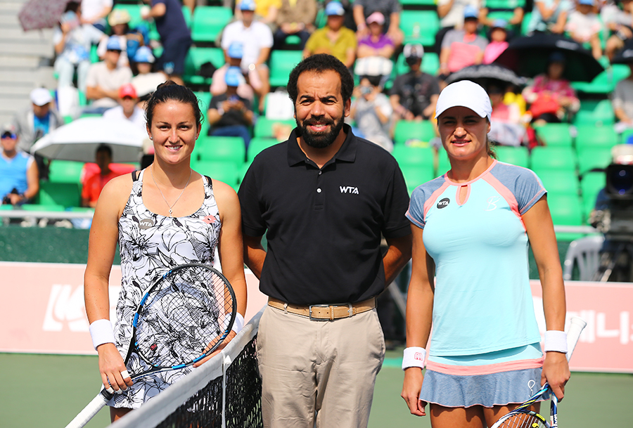 결승 진출자 아루아바레나와 니쿨레스쿠. 심판은 WTA Kader Nouni(프랑스)