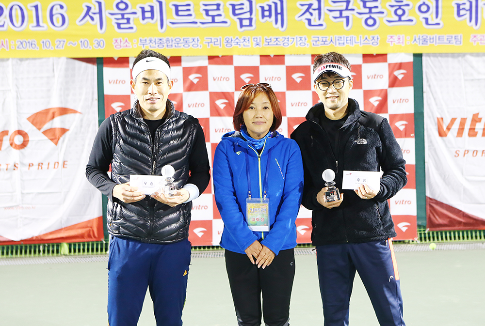 김미희 대회장은 “한 마디로 대박이다”라고 사람들이 말한다며 엄지손가락을 폈다. 오픈부 대회가 열린 30일 부천 종합운동장 코트에서 만난 서울비트로팀배 김미희 대회장, 서울비트로팀의 서영익 팀장, ㈜학산 비트로의 안희동 차장의 얼굴은 환하게 펴 있었다. 그들은 “서울비트로팀배가 열리는 기간에 한국공항공사배가 함께 열려 심리적인 부담감이 많았다”며 이구동성으로 말했다.