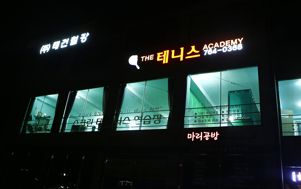 더 테니스 실내 테니스 연습장은 경기도 광주의 시내 중심가에서 조금은 떨어진 한적한 건물 2층에 있었다. 50평의 연습장은 인조잔디로 깔렸다. 볼을 자동적으로 공급해주는 볼 머신 2대, 테니스 파트너기, 장비가 없는 이들을 위해 라켓을 비롯한 테니스 용품들이 구비되어 있었다.