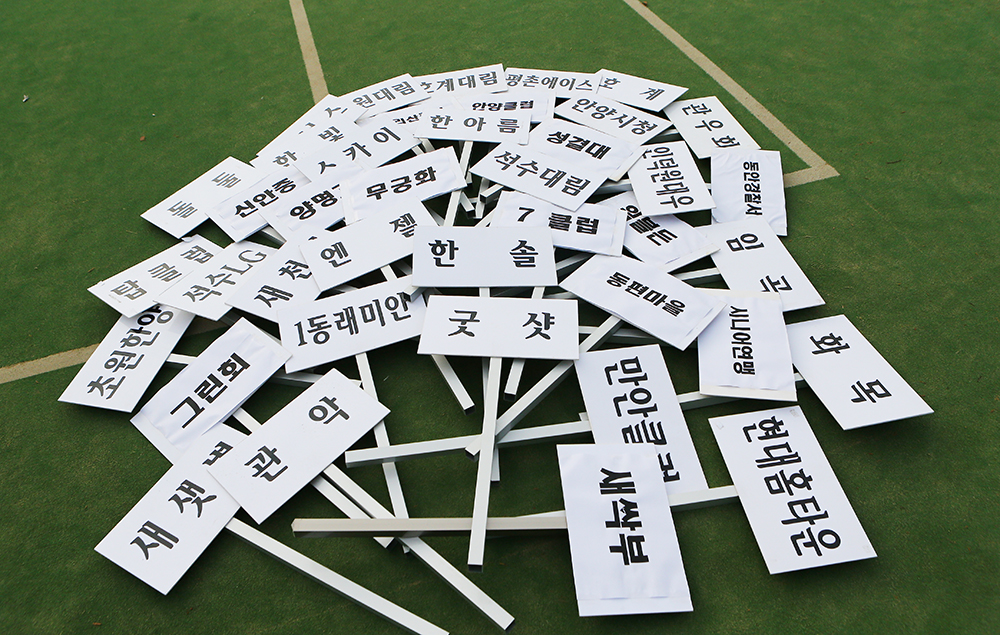 | 개회식에 참석한 클럽의 명패들 |