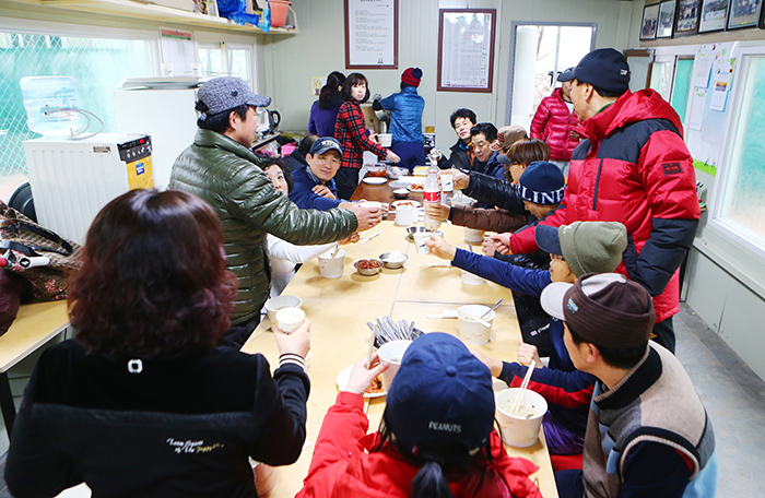 송송 썰은 맛깔스런 김치가 올려지고 김이 모락모락 나는 떡국이 나왔다. 진한 쇠고기 국물에 끓인 떡국은 차가운 몸을 일시에 따뜻하게 녹였다. 회원들은 떡국과 함께 새 해의 복을 서로에게 기원했다.