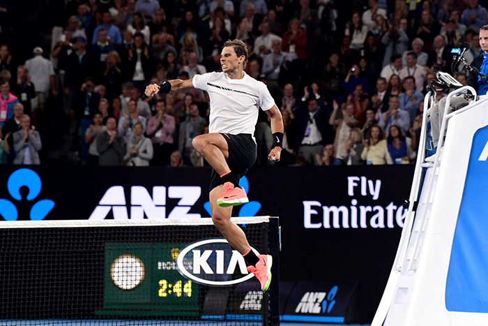라파엘 나달, 호주오픈 4강에 4번올라 3번 결승진출했다.  우승은 한번(2009년)했다. 그가 결승에서 이긴 선수는 페더러, 졌던 선수는 조코비치(2012)와 바브링카(2014)다. 나달은 투어 무대에서 살아남기 위해 4년전부터 플레이 스타일, 스윙 폼에 변화를 주기위해 노력했고 지금 그 성과를 확실히 보이고 있다.