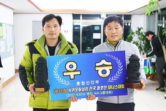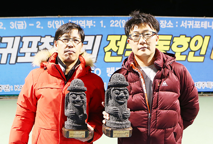 통합 오픈부 우승 김성훈(전주시 테니스협회 사무국장) 2008년 카토 청년부 1위, 단식 1위를 했다. 그리고 4년 정도 대회에 출전하다 그 후 가까운 곳에서 열리는 대회를 제외하고는 거의 대회에 나가지 않았다. 전주시 테니스협회에서 제주도에 함께 올 계획을 갖고 있었는데 김천 데이비스컵에 응원을 갔다. 나는 업무적으로 제주에 와야 할 일이 있었고, 마침 그 시기에 서귀포칠십리 대회가 예정되어 있었다. 옛날 생각도 나고 해서 한 번 해볼까? 해서 시작했다.