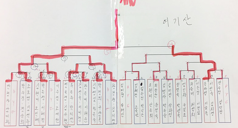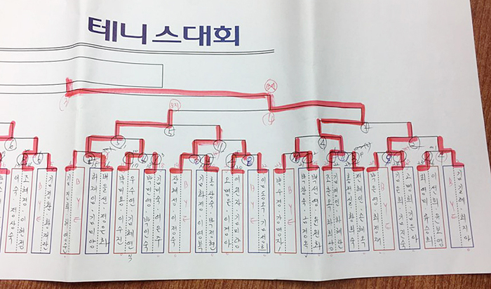 김선주씨와 조호영씨는 자신들의 4강전이 먼저 끝나자 “저 언니는 발리는 좋은데 포가 약하다” “저 언니는 스매싱이 좋다”등등 조춘옥, 차희낭 페어의 4강전을 지켜보며 분석을 하기 시작했다. 그런 분석이 주효했을까? 둘이 함께 전국대회 시합을 다닌 지 5년만에 개나리부 우승을 차지하며 국화부가 됐다.