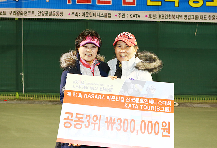 나사라 마운틴컵 첫날인 국화부, 우승은 문곱심(비트로, 진플러스), 엄경화(대전하나)페어가 강기자(용인에이스), 전현화(수요회)페어를 물리치고 우승을 차지했다.