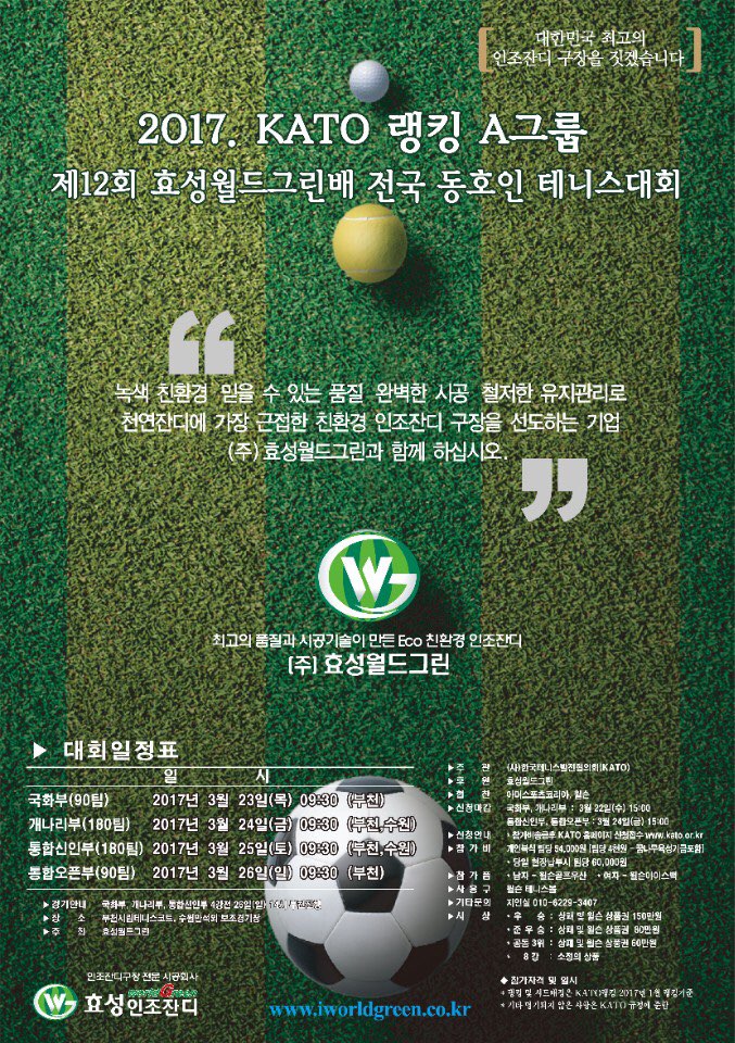 2017년, 제7회 CH배(대회장 김옥선)가 4일간의 열전을 끝냈다. 카토 A그룹의 CH배는 5개부서(개나리, 국화, 통합신인, 통합오픈, 혼합복식)에 걸쳐 약 550여팀이 참가했다.