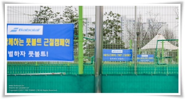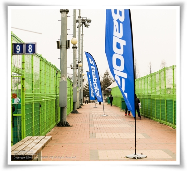 코트장에 들어서니 통로에 설치된 포토존이 눈에 들어온다. 포토존은 참가 선수들의 마음을 설레게 만든다. 자신이 주인공이 될것이라는 기대감 때문이다. 포토존을 지나니 대회홍보용 플랑카드가 대회장 분위기를 한껏 띄운다.