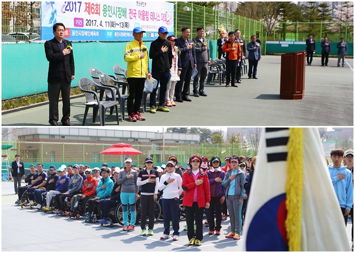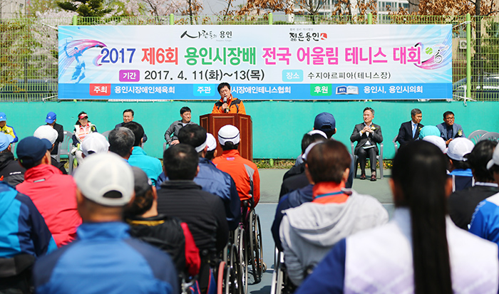 4월11일(화)~13(목)일 용인 수지 아르피아 테니스장에서 용인시장배 전국 어울림 테니스대회(이하 용인시장배 어울림 대회)가 있었다. 올해 6회를 맞이한 용인시장배 어울림 대회는 정찬민 용인시장을 비롯 표창원 국회의원등 내, 외빈 20여명과 휠체어 선수, 국화부, 개나리부, 시니어부의 동호인 30여명이 참가했다.