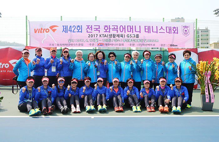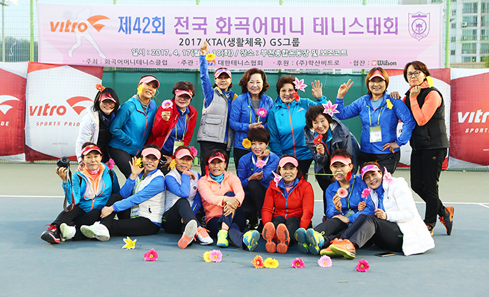 비트로배 제42회 전국화곡어머니 테니스대회(대회장 이수령, 이하 화곡배)가 부천종합운동장 및 보조코트에서 열렸다. 4월18일(화) 진행된 개회식에는 대한테니스협회 곽용운 회장, 춘천소양강배 한광호 대회장, 학산 비트로 최창국 상무 및 임직원 등 내외빈을 비롯 국화부 참가 선수 2백여명이 참석하여 자리를 빛냈다.