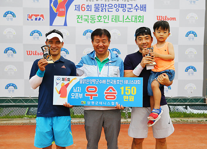 오픈부 우승자들과 함께 한 정상욱 양평군 테니스협회장(중앙)