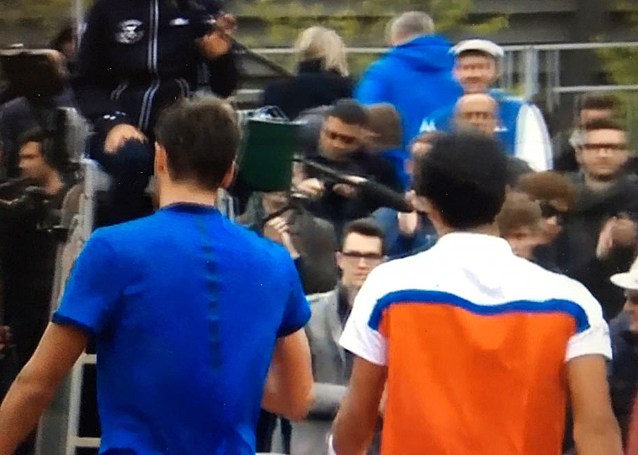 벅참과 착잡함, 정현과 알리스가 경기가 끝난 후 심판을 향해 걸어가고 있다