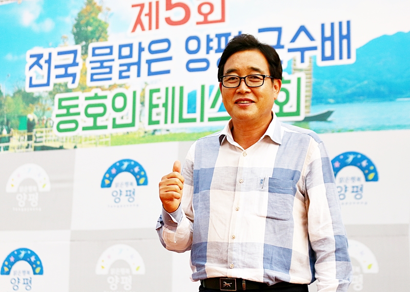 | 양평 김선교 군수는 매년 3천만원씩 양평군수배를 지원한다. 테니스 매니아로 주 2~3회 새벽에 공을 친다. 혼합복식에도 출전했다. |