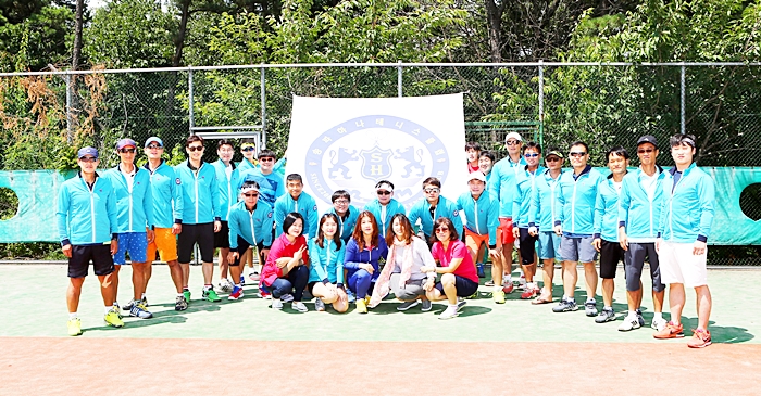 송파 하나클럽은 아디다스오픈 결승전이 있기 전날인 25일(토)에, 경기도 이천에 있는 숲속실내테니스코트에서 뜻 깊은 행사를 가졌다. 클럽 탄생 10주년 기념행사다. 개인적인 사정으로 불참한 두 사람을 제외한 30명의 회원과, 가족들까지 40여명이 모였다. 아내들도 그 자리에 함께했다. 최 연소 참가자는 아직 엄마의 뱃속에 있었다. 발목부상으로 운동을 쉬고 있는 양환욱고문(송파구연합회장) 역시 목발을 짚고 참석하는 열의를 보였다.