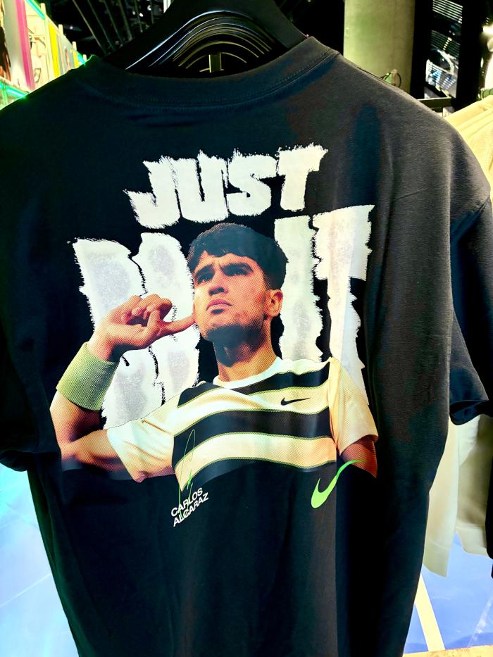 야닉 시너, 카를로스 알카라즈, 아리나 사발렌카, 중국여자선수인 정친원 이렇게 4개의 제품이 있었다. 알카라즈의 팬인 나는 남녀공용 제품이라 조금 크기는 해도 당연히 알카라즈 제품을 구입하기로 마음먹었고, 홀린듯 구경하다 정신을 차려보니 어느덧 사발렌카 티셔츠까지 쇼핑백에 담겨 있었다. 가격은 298위안으로 드라이핏 같은 기능성 의류가 아닌 일반 면티셔츠 치고는 비싼 편이었지만, 중국에서만 구입가능한 희소성이 있기에 구입을 망설이지 않았다.