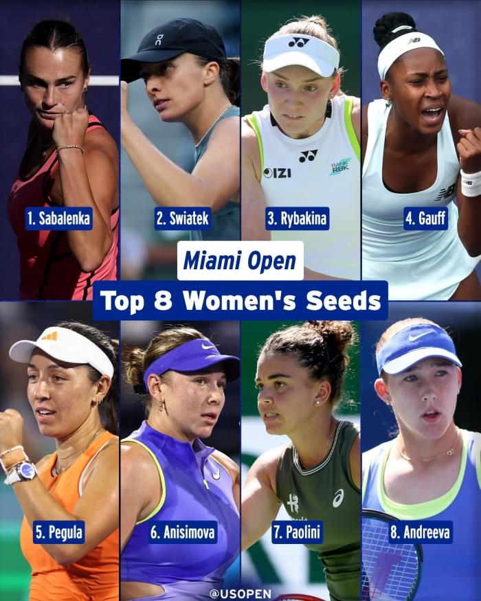 여자 단식에서는 최상위 랭커가 총출동했다. 사발렌카, 시비옹테크, 리바키나, 코코 고프등 톱 랭커들이 대거 출전하며 치열한 경쟁이 예상된다. 가장 우승 확률이 높은 선수는 역시 아리나 사발렌카다. 지난 해 챔피언에 직전 인디언웰스에서 숙적 엘레나 리바키나에게 역전승하며 첫 타이틀 확보에 성공했다.
